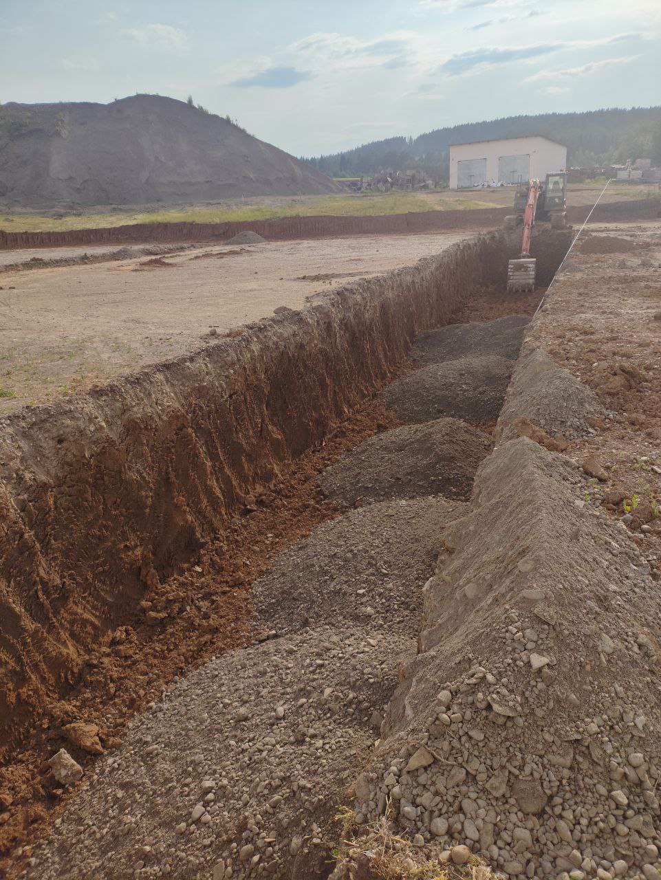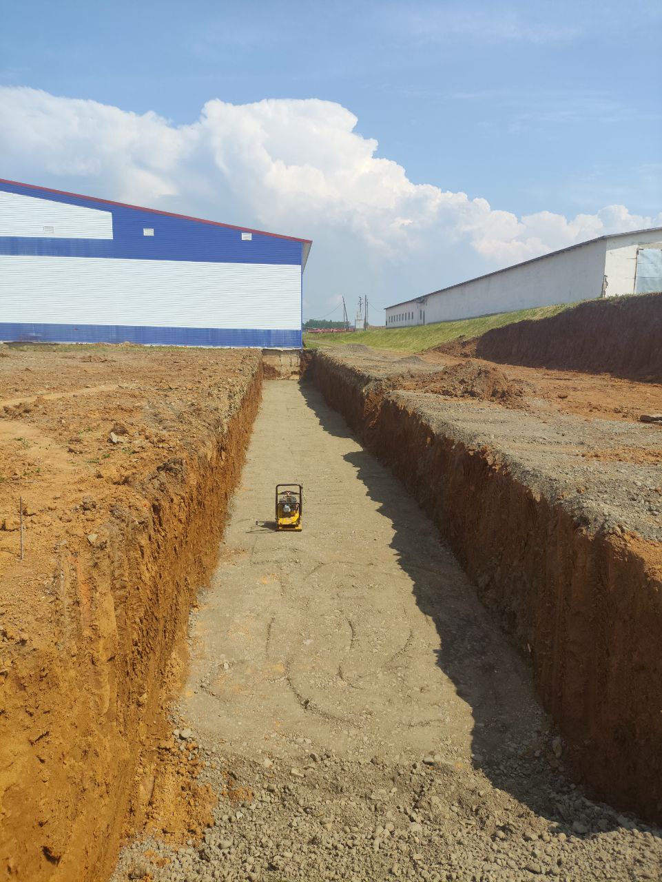 — Земляные работы. Устройство котлована и обратная засыпка котлована песком с послойным уплотнением;