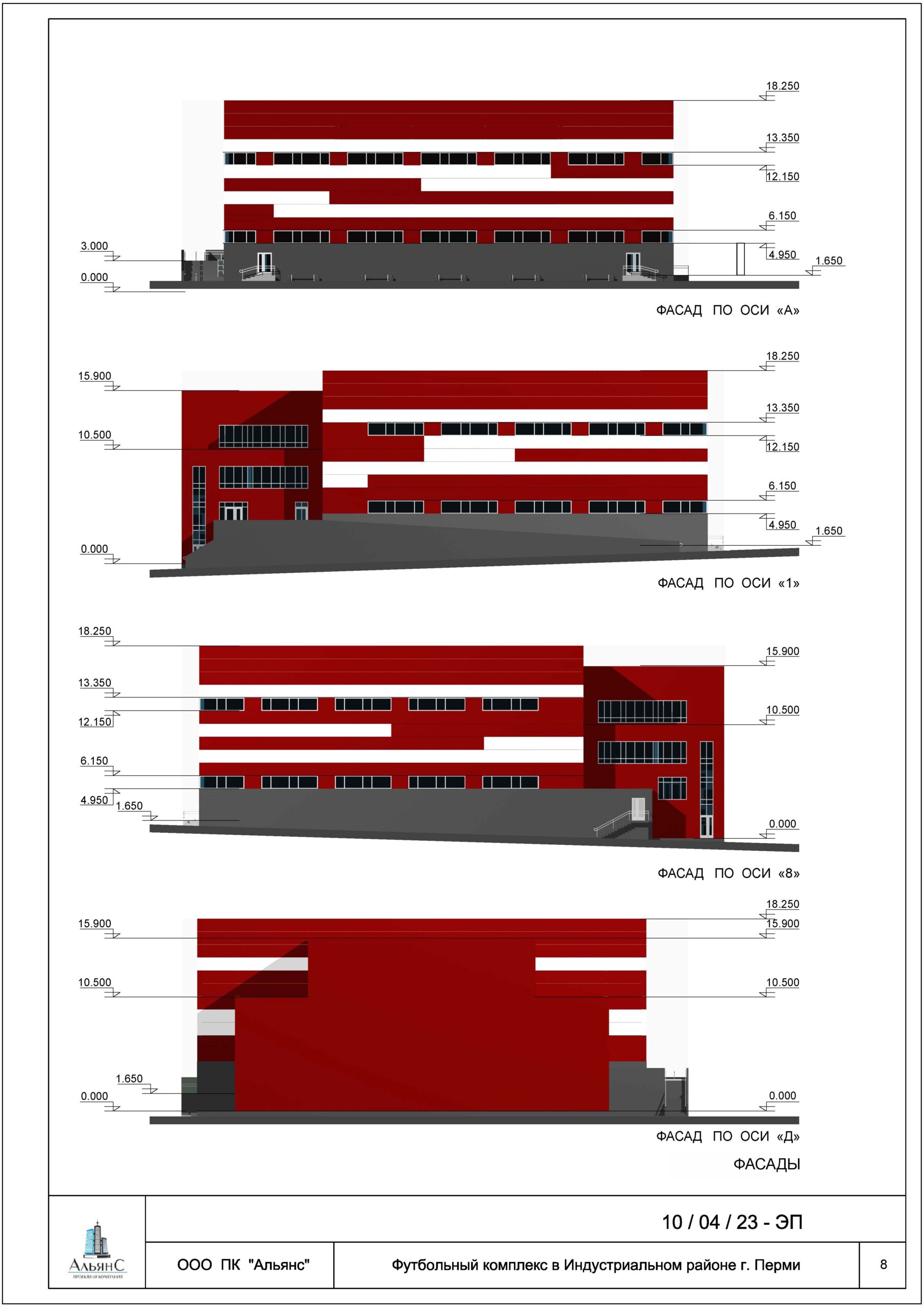 Проект: Генеральный подряд на проектирование футбольного комплекса с 3-х этажным административно-бытовым корпусом в индустриальном районе г. Перми (S=2500м2)
